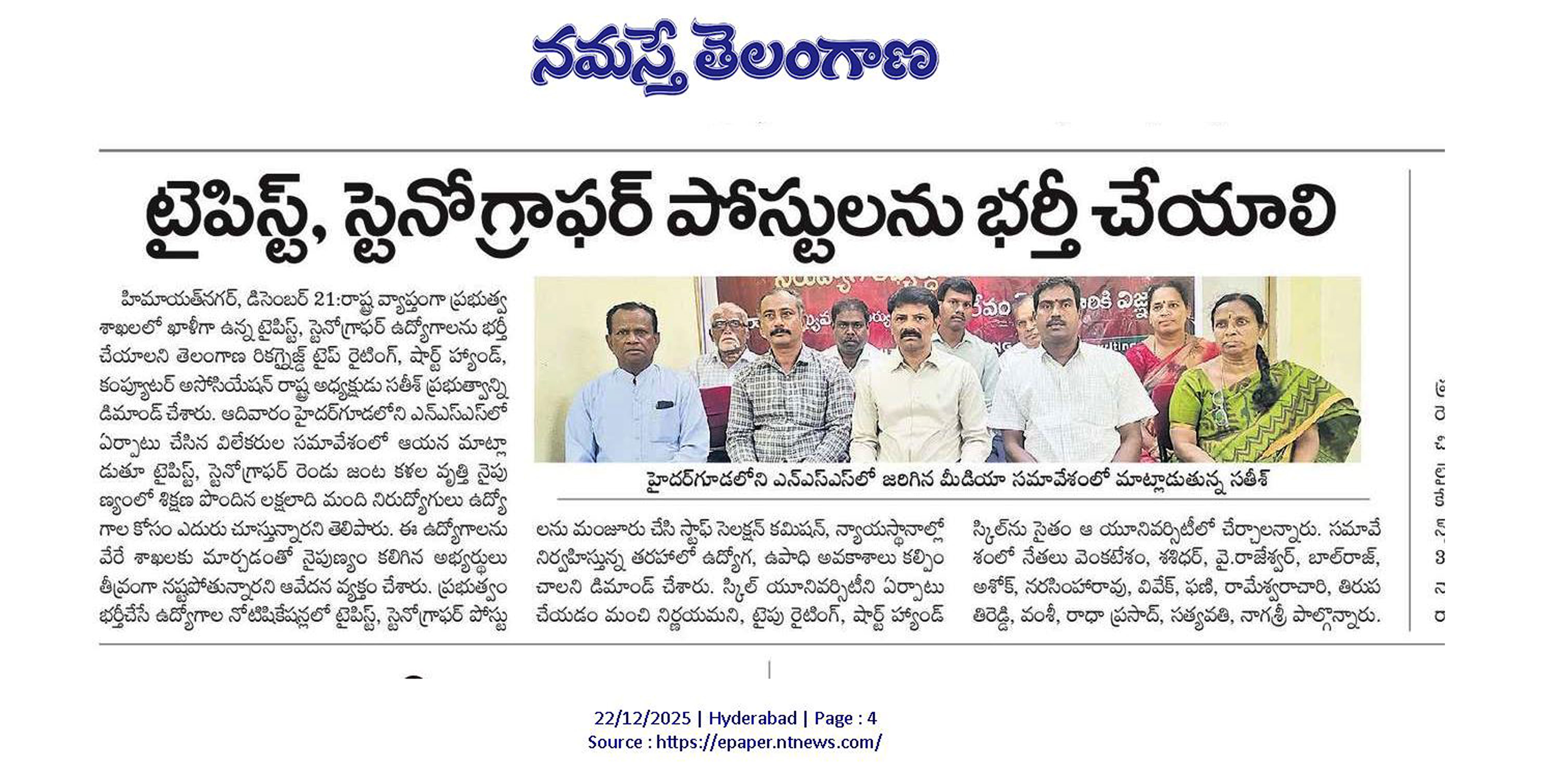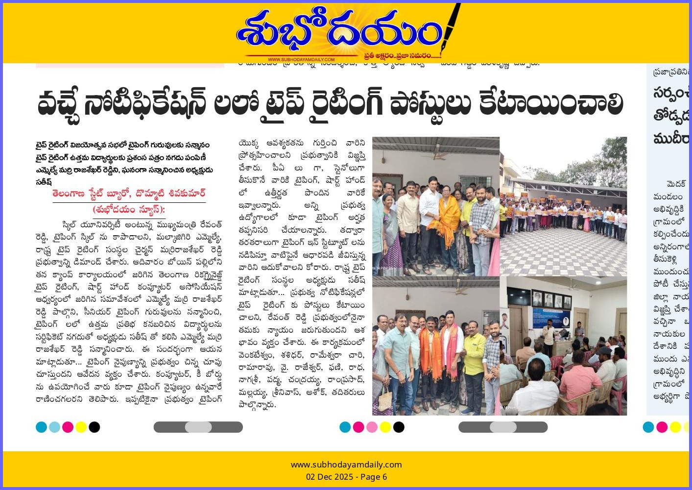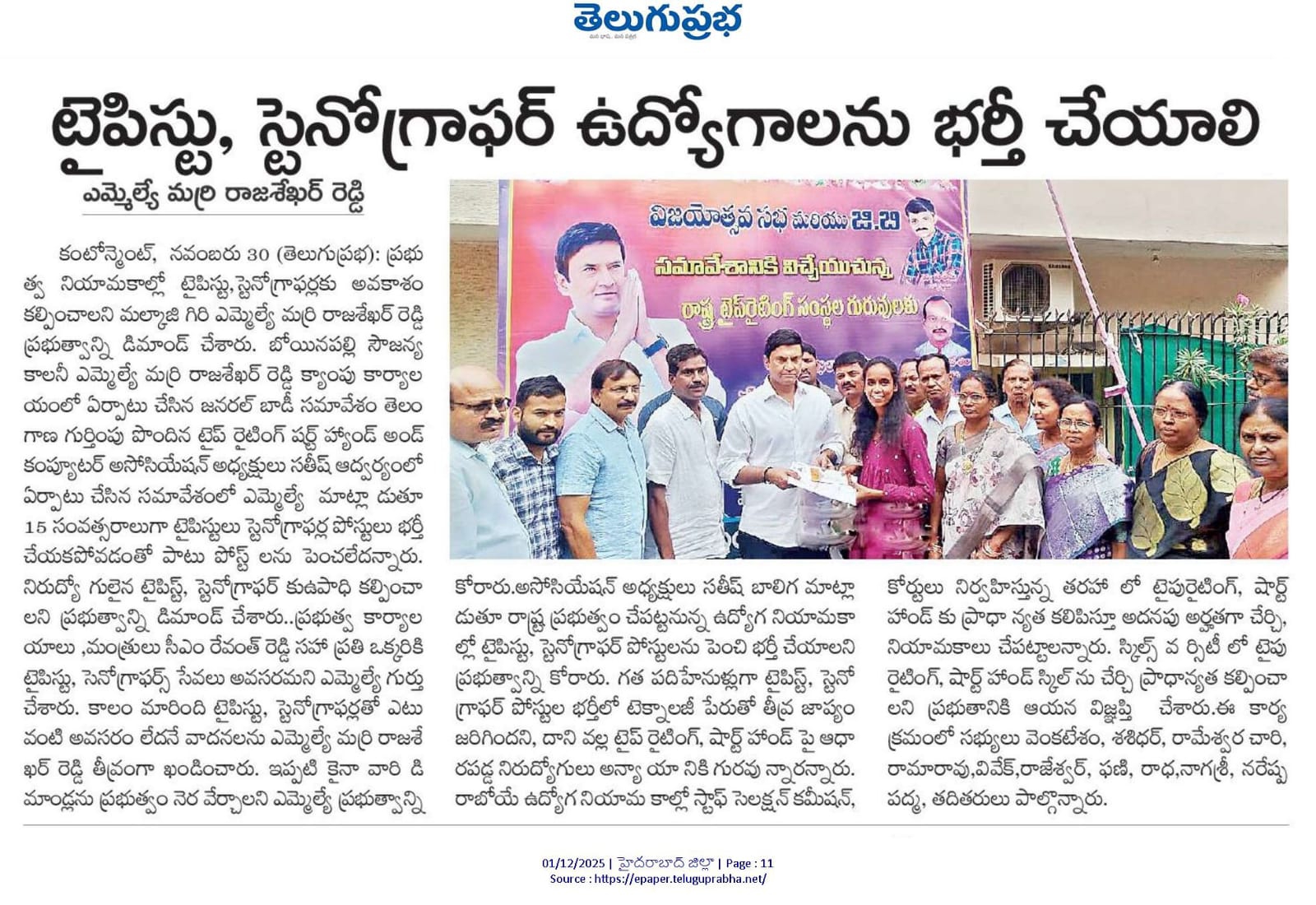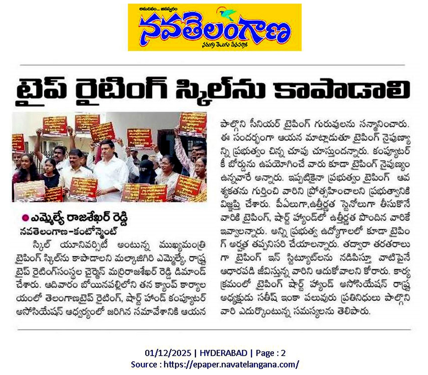 TRTS & CA has been formed in the year 2019 under the recognition of Telangana State Government. Malkajgiri Parliament In-charge Shri Marri Rajashekar Reddy Garu is currently representing as the Chairman of Typewriting and Shorthand Institutions.