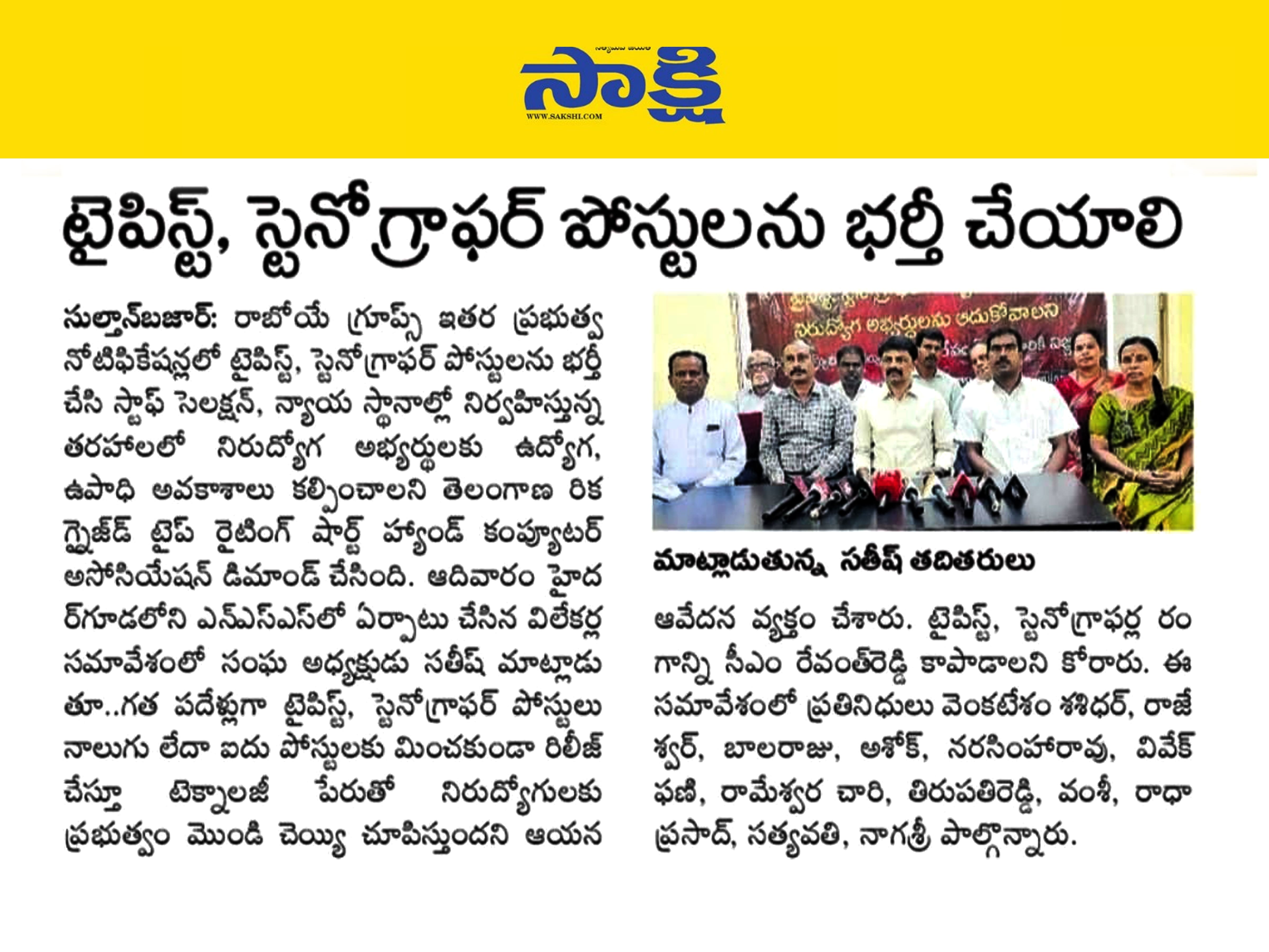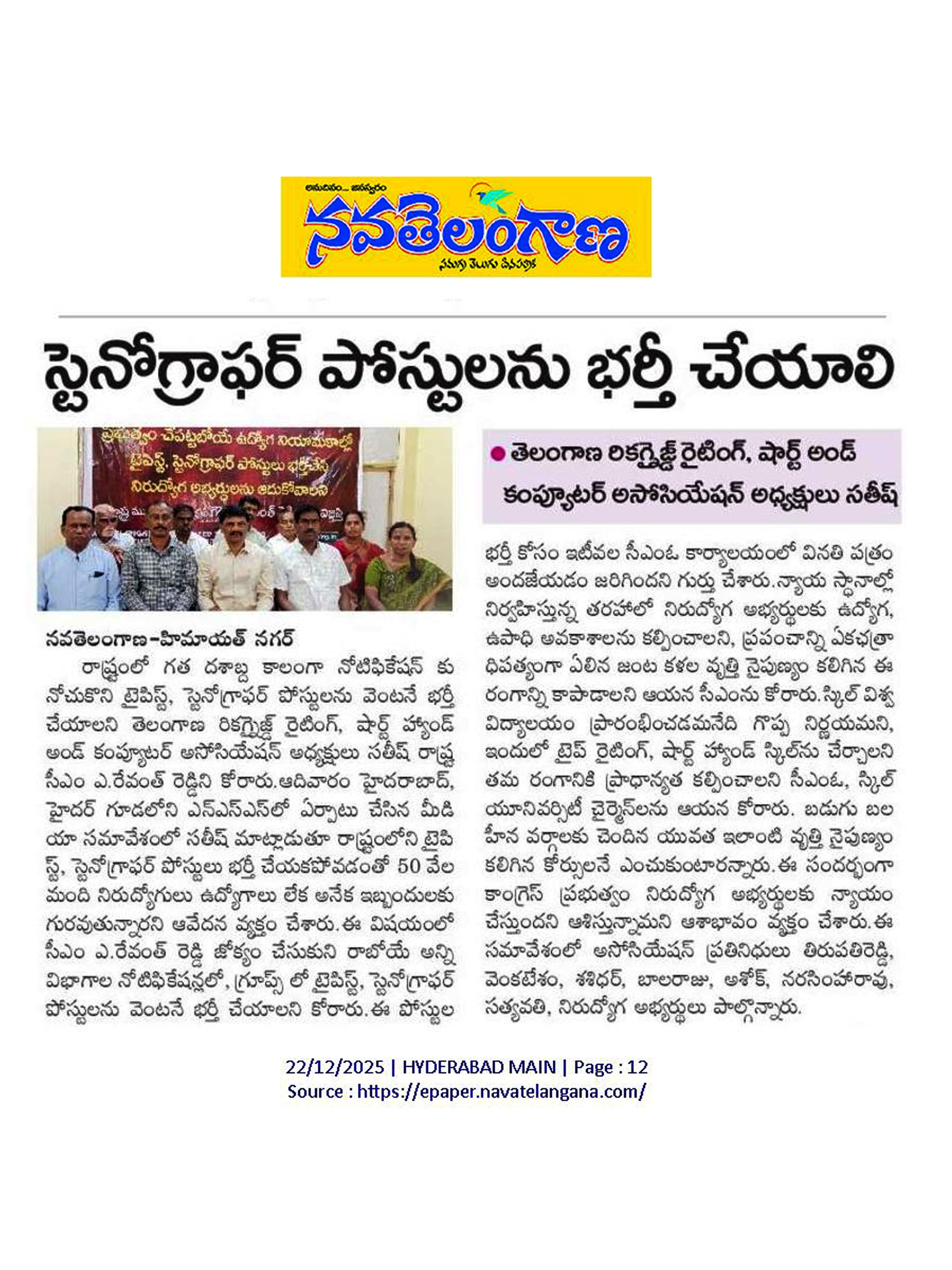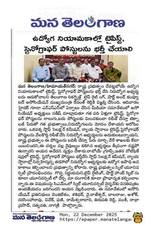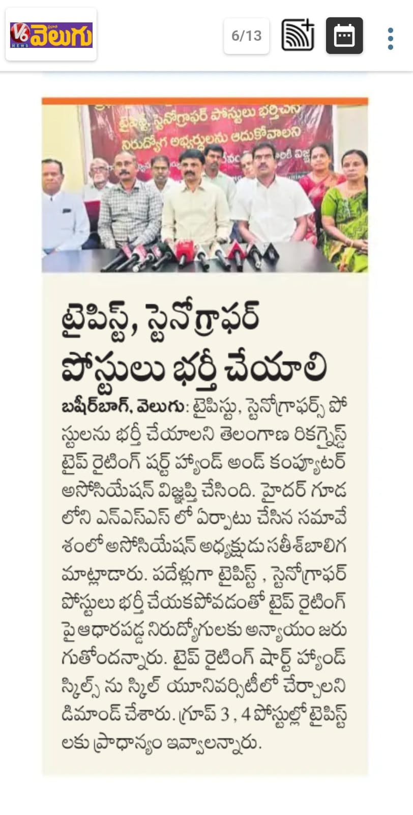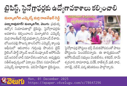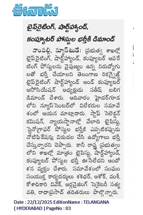 TRTS & CA has been formed in the year 2019 under the recognition of Telangana State Government. Malkajgiri Parliament In-charge Shri Marri Rajashekar Reddy Garu is currently representing as the Chairman of Typewriting and Shorthand Institutions.