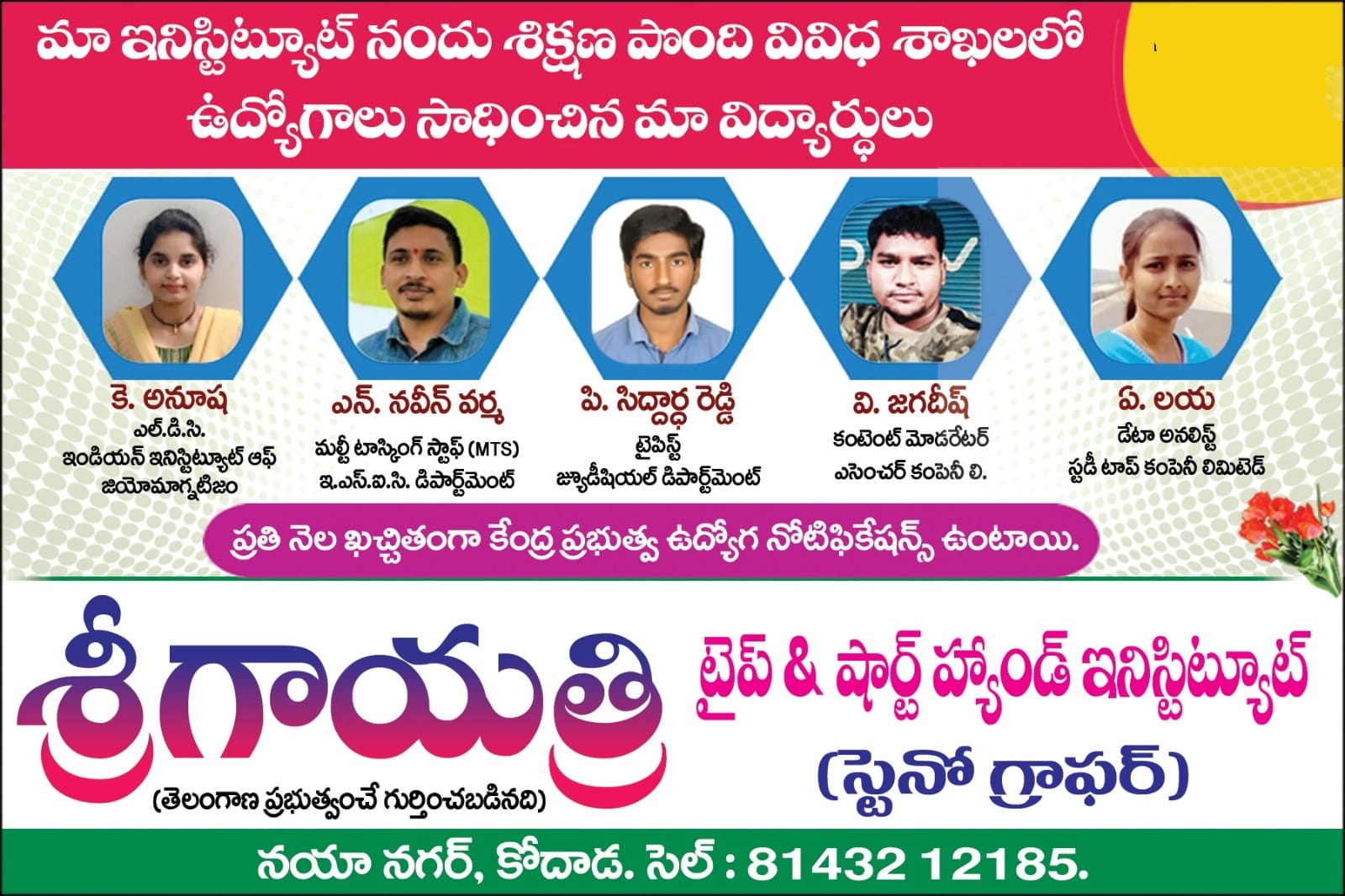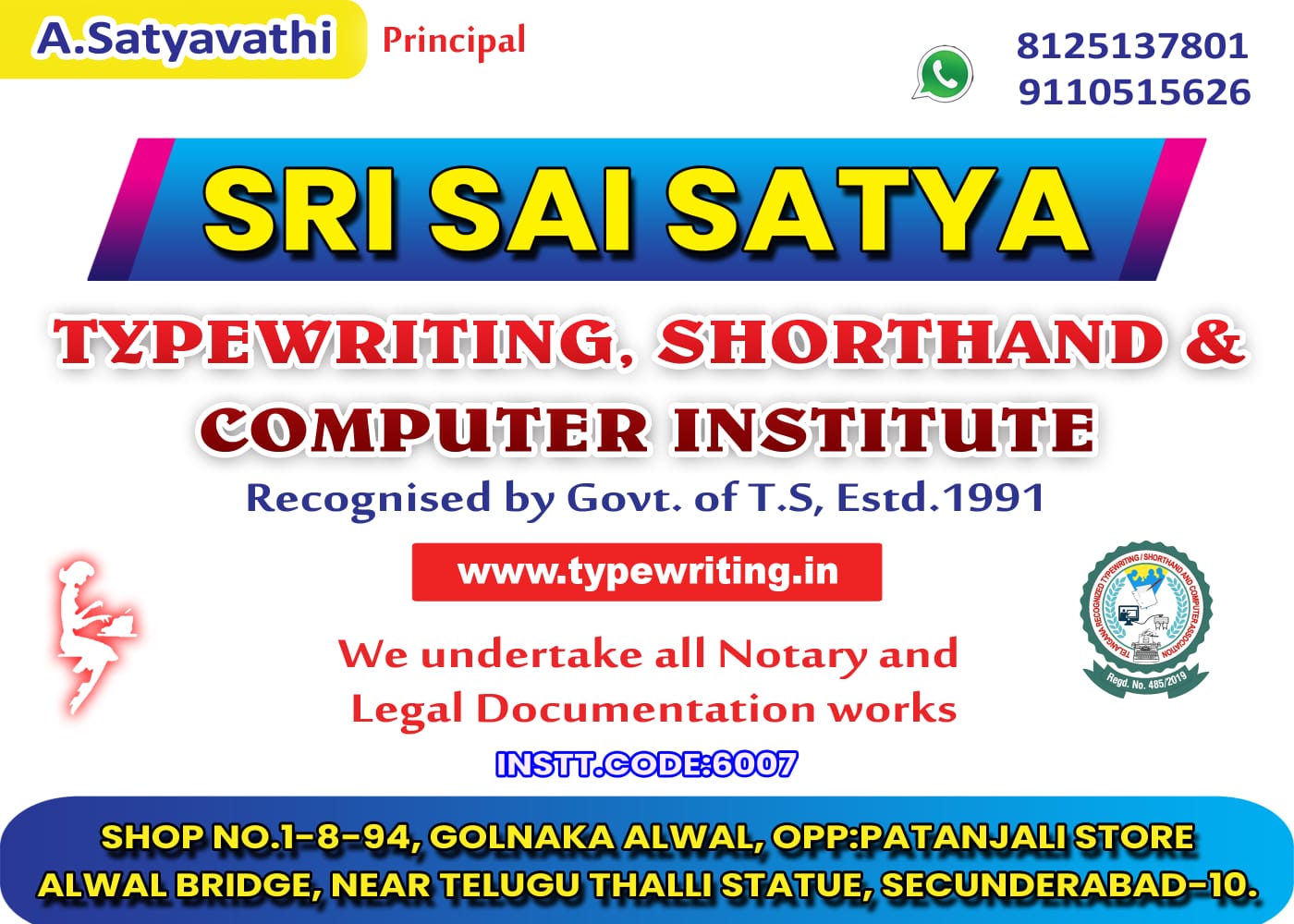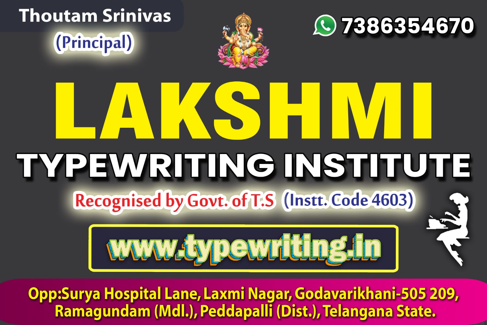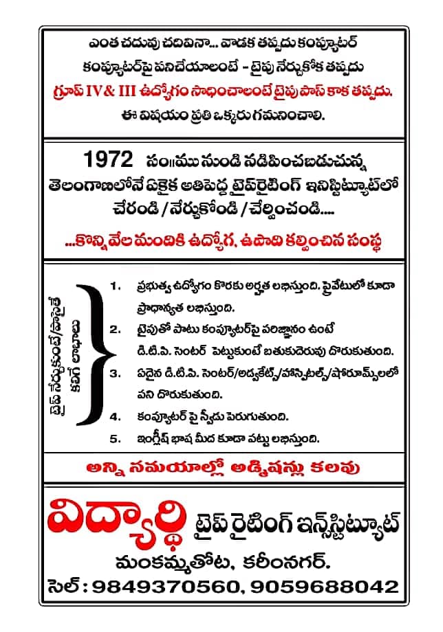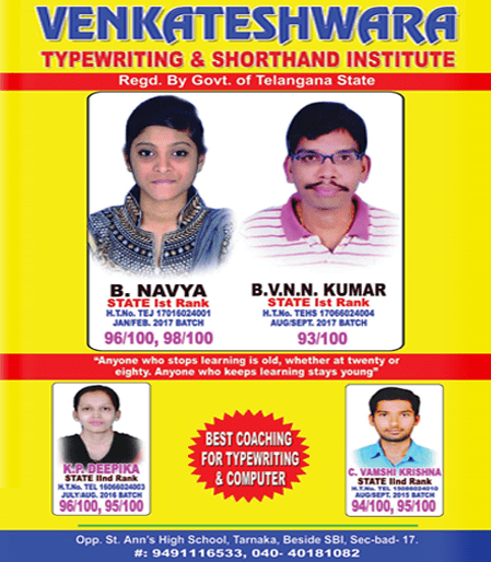 "I, Rajeshwar has been working in this profession for more than 35 yrs and I am very happy to continue to educate the students on these technical skills like typewriting, shorthand which not only helped many students built their career but also made them successful in their life."