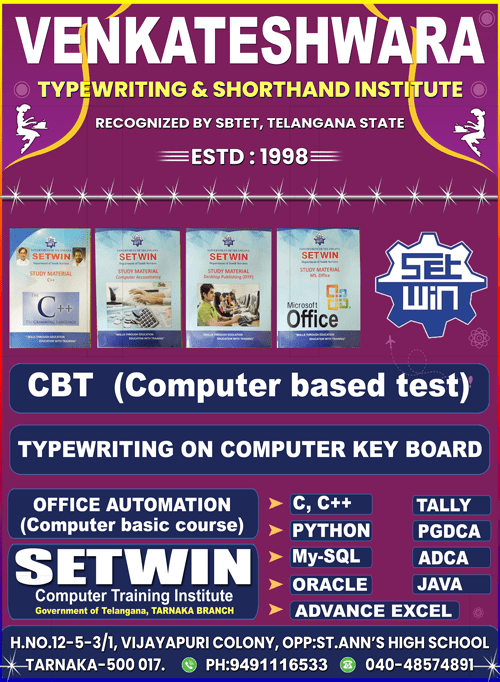 TRTS & CA has been formed in the year 2019 under the recognition of Telangana State Government. Malkajgiri Parliament In-charge Shri Marri Rajashekar Reddy Garu is currently representing as the Chairman of Typewriting and Shorthand Institutions.
